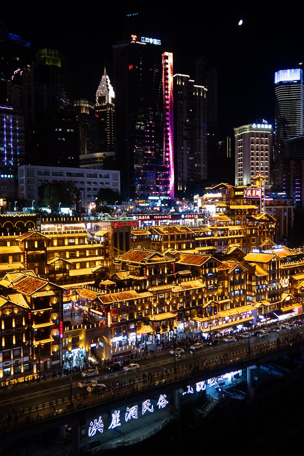 Come for the views, shops, and eat at other local favorites. Go to Chaotianmen Bridge and walk down to Hongyadong to get the best views.